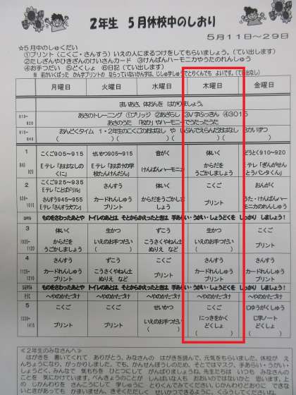 5月21日(木)よてい 2年生