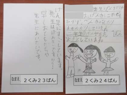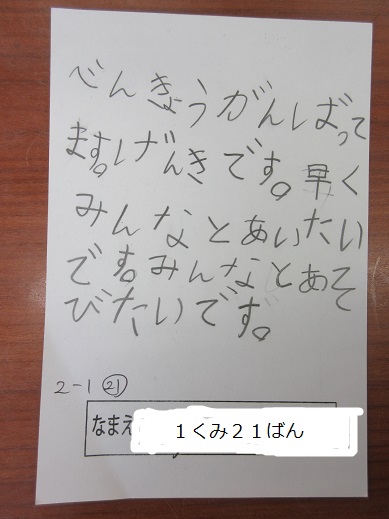 25日(月)から分散登校が始まります。1・2年生はコースごとに並んで、時間通りに下校します。お迎えの場合は必ず連絡帳に記入し、予定の下校時刻までに来てください。よろしくお願いいたします。