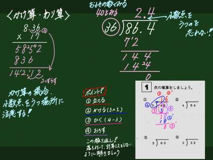 今日の3限に、小数の計算問題の復習がありました。