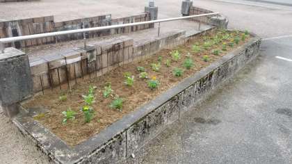 今日は、市から届けられたサルビアやマリーゴールドの苗を職員で植えました。