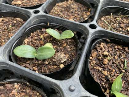 今日は昨日芽が出たヘチマがさらに大きくなっていました。
