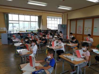 国語の時間は、いつものように大きな声を出さずに、マスクを付けたまま、小さな声で「微音読」を行います。