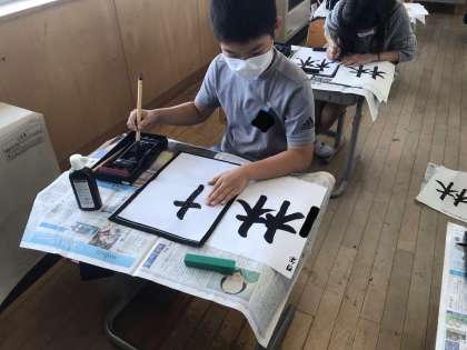 久しぶりの毛筆に緊張しながらも丁寧に形を捉えて書き進めました。へんとつくりの関係を「林」から考えました。
