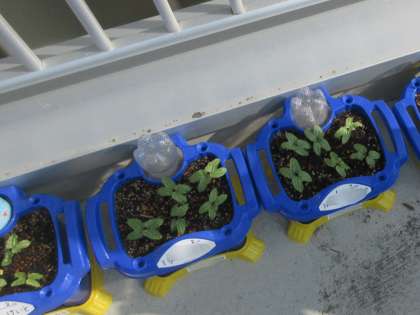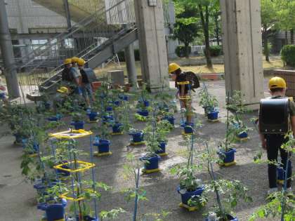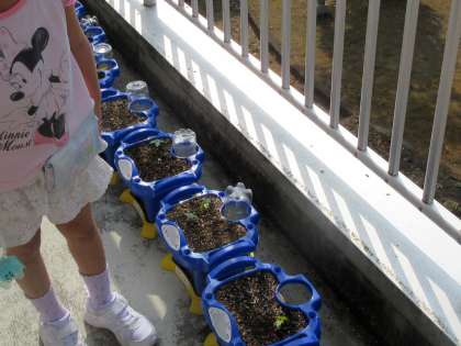 1年生が、友達のアサガオの芽を紹介してくれました。