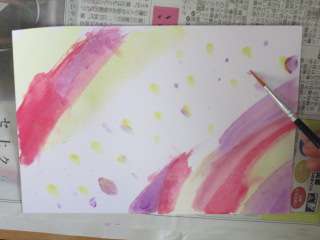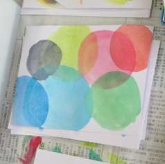 「できたもようを見て、どんな気持ちがうかんでくるか考える」「今の自分の心をもようで表してみる」など、気持ちや感情を色で表すことを楽しんだり、試しながら形や色のよさを味わったりしました。