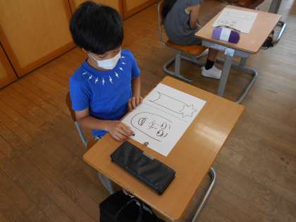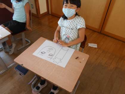 子供たちは、「なりたい自分の姿(言葉)」と「自分の顔」を画用紙に書きました。