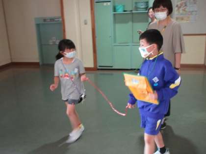 1年生に学校の中を案内しました。コロナウイルス感染拡大防止のため、手は繋ぐのではなく、1メートルのひもをもちながらの学校探検となりました。それでも子供たちは、1年生に学校のことを知ってもらおうと、一生懸命に伝えようとする姿がたくさん見られました。ふりかえりでは、「楽しかったと言ってもらえてうれしかった」「名前も覚えてきたよ!」といった感想が出ていました。