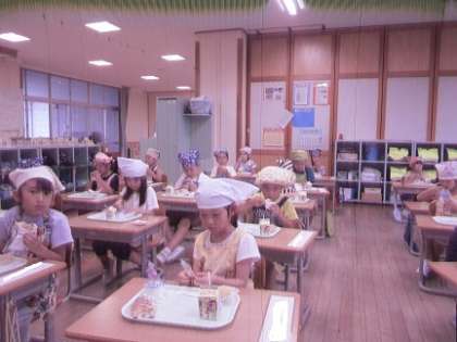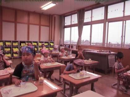 給食が始まって2日目。全員が前を向いて、私語をしないでの給食ですが、ルールを守って静かに食べることができました。1年生も、頑張っています!