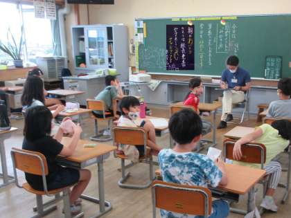 黒板に「昨日のあいさつよかったよ」とメッセージがあったので、
