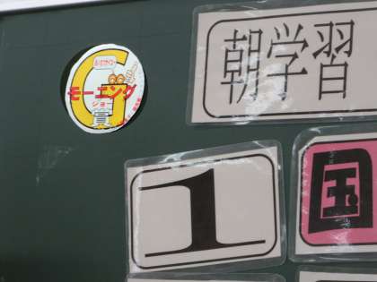 昨年度、毎朝、元気なあいさつの教室に貼られていた グッドモーニング賞をあげました。