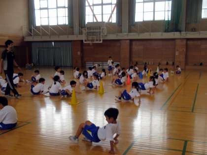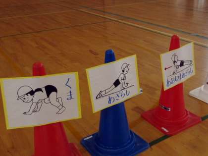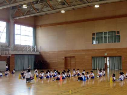 大きな体育館でダイナミックに学習中。