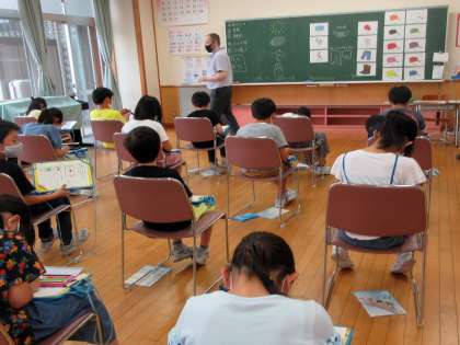 外国語活動を終えた子供たちが