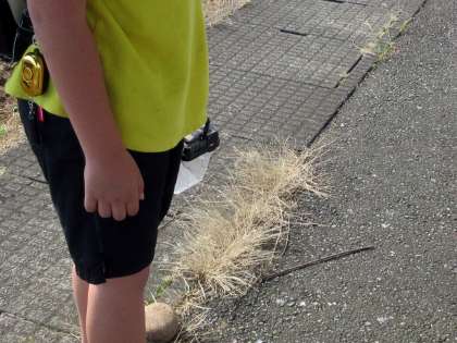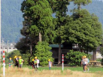 虫かごを手に下げた3年生がいました。