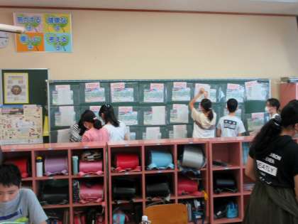 6年生教室には、ファイルポケットや掲示板、作品展示スペース等がたくさんあります。