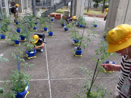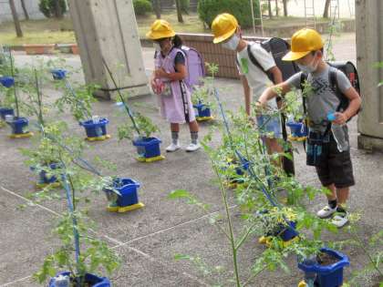 まだ青いミニトマトですが、大きな実がたくさんついています。