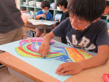 割れたたまごからでてくるお話を考えて、絵を描きました。