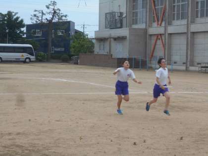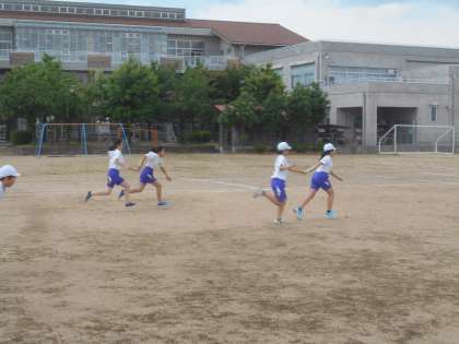 ちょっとでも素早く、ちょっとでも上手に。バトンパスを練習した子供たちは、今日初めてリレーに取り組みました。