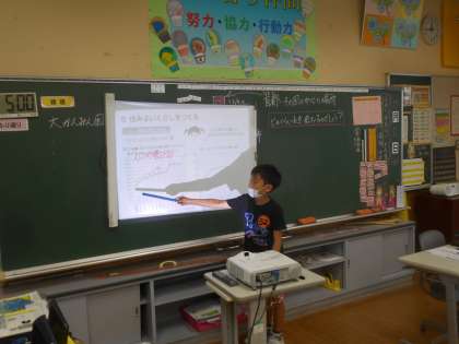 今日は、資料から分かることを読み取りました。人口は変わらないのに、水の量が減っているところに気付くなど、進んで学習に取り組んでいました。