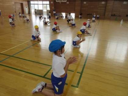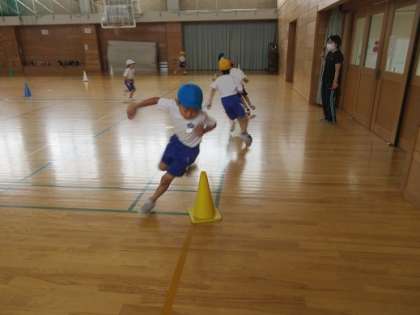 今日はジグザグ走をレベルアップさせ、カラーコーンの周りをまわって走りました。上手く回るコツを友達から聞いて、実践してみることもしました。上手に回れている友達には拍手を送っています。