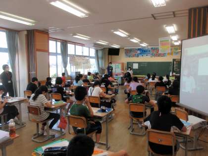 英語専科の先生は週に2日来校し、3年生以上の子供たちの外国語活動と外国語を指導します。