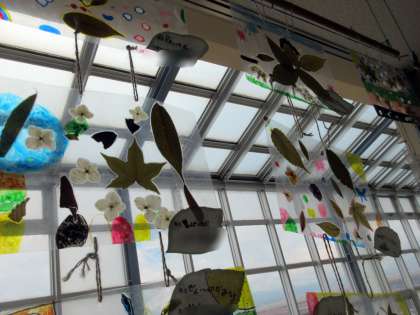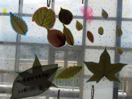 葉っぱがパウチに閉じ込めて、色や線を加えています。