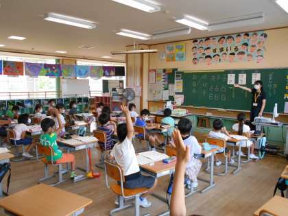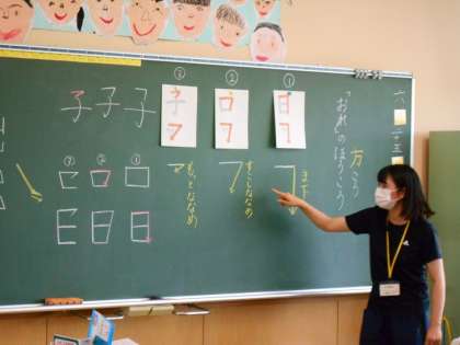 書写の時間です。漢字には、文字の特徴として「折れ」がありますが、それは漢字によっていくつかの種類に分けられます。本時では、それを仲間分けして、正しい「折れ」をできるよう視覚的に確認していきました。