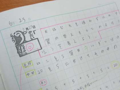課題と 授業後の自己評価を記入するために、ノートに押してあります。
