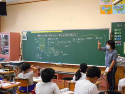 5年生の算数科では、整数のときの学習を生かしながら、小数の場合ではどうなのか考えます。既習事項を活用することが学びを広げ、深めます。