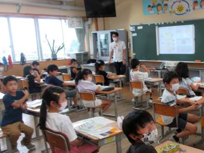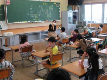 姿勢に気を付けること 学習を大切にすること 先生と子供たちが話をしていました。