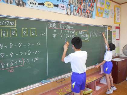 分数のわり算で気を付けるポイントを意識して練習しました。