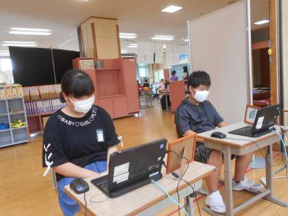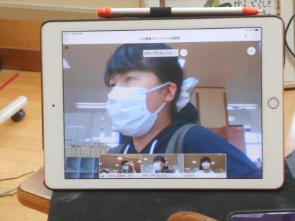 オンライン授業を行う際、どのようにしたら接続できるのか、実際に体験しながらみんなで確かめました。