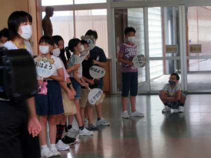今日も運営委員会が、あいさつでみんなを迎えます。