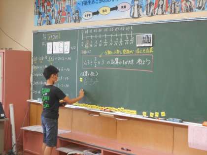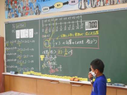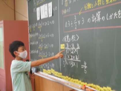3種類の数字が混じっている計算の仕方を考えていました。分数にそろえるか、小数にそろえるか、どちらかの方法で計算できることに気づきました。