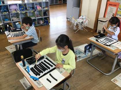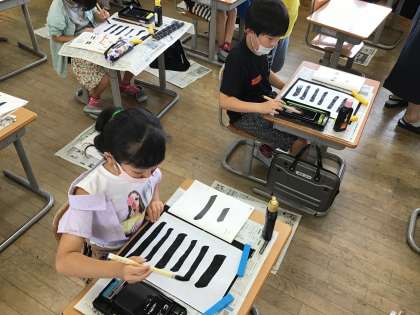 3年生 毛筆に挑戦〜「二」を書きました〜