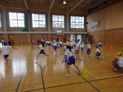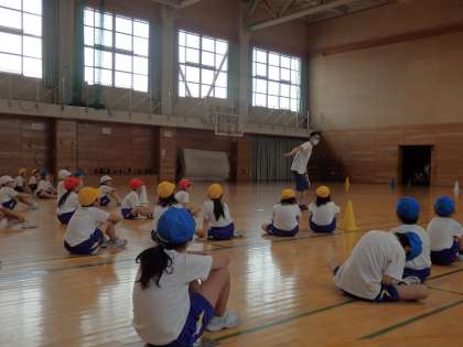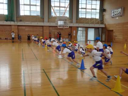 バトンパスでは、受け取る人が少し走りながらバトンをもらうことで、チームとしてより速く走ることができました。声をかけ合う姿も素敵でした。