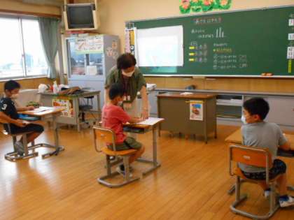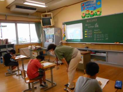 今日は、算数科の学習の様子を見ていただきました。長さの学習を3人一緒にしました。興味をもって長さを比べたり測ったりすることができるようになっていってほしいと願っています。