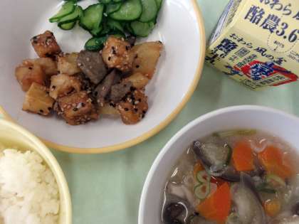 ・高野豆腐とレバーのごまからめ ・きゅうりもみ