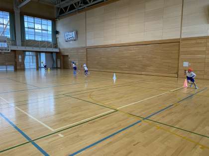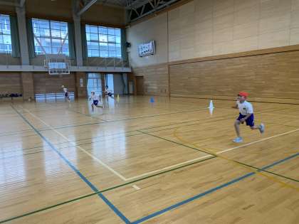 体育の時間に投げる運動やリレーを行いました。走る順番や受け取り方を工夫して少しでも速くなるように考えていました。
