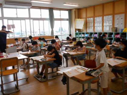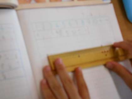 ものさしを使って直線をかきます。ものさしをしっかりと当てながらでないとゆがんだ線になってしまいますので、けっこう気を遣います。気を付けることについても話し合いました。