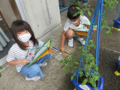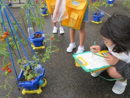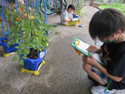 梅雨の時期は雨が続いていたため、なかなか外にミニトマトの観察に行くことができませんでした。しかし、今日は晴れまでとはいかないですが、久しぶりに雨が上がったため外に観察に行くことができました。