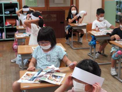 紙を輪ゴムやホチキスで、わっかにして身の回りを飾るものをつくります。