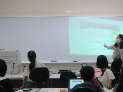 いつもは紙に書くアンケートをパソコンで入力。 戸惑いながらも、入力成功。