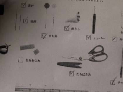 裁縫道具のチェック中。