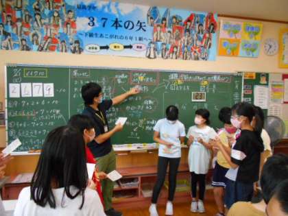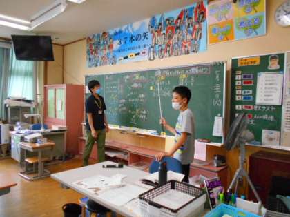 課題に対して自分の考えをもちます。自らの必要に応じて教師の説明も聞きます。考えの交流もします。ソーシャルディスタンス、机の距離を空け前向きにしながらも、協働的な学びはできます。