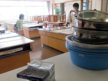 今から体操服の洗濯のようです。 手洗いはたいへんだけど、きれいになるかな?