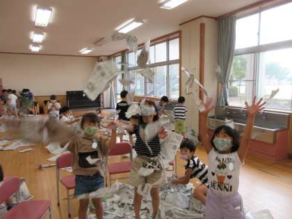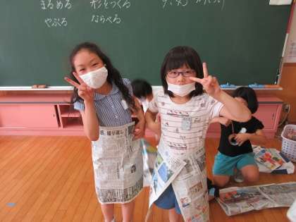 図画工作科で「しんぶんしとなかよし」という学習をしました。