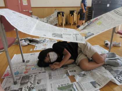 破いたり、丸めたり、体に身につけたり、、、新聞紙をつかっていろいろな方法で遊びました。遊んでいる中でも、「ちぎっていたら、桜の花びらみたいになった!」「つなげてたらベッドみたいになった!」と様々な発見をして学んでいる子供たちです。