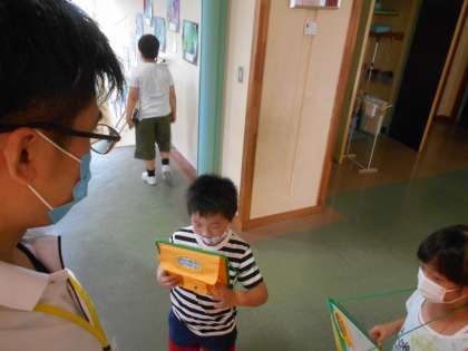 1年生の生活科の学習で、学校の先生と仲良くなる学習があります。お手紙の返事をとりに、それぞれの先生のところに行きました。