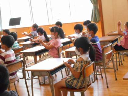 まずは持ち方。楽しみながら学びをつくっていきます。