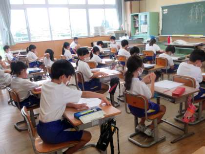 算数「数の大きさのくらべ方」を学習中。 となりの教室はまとめプリントに取り組んでいます。